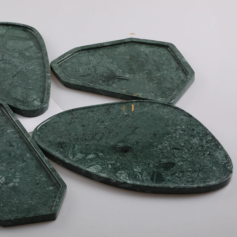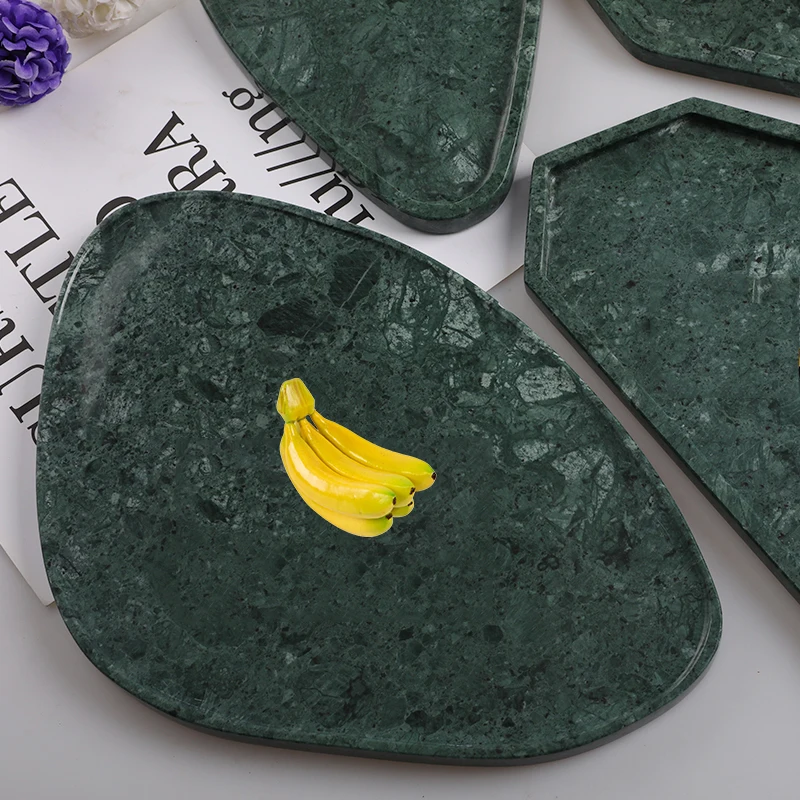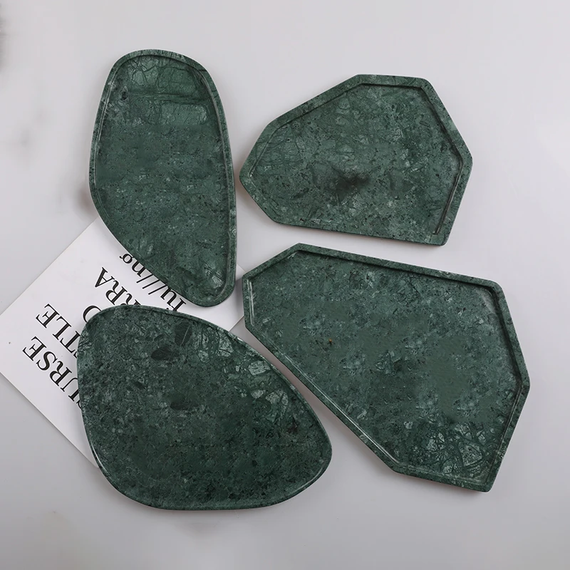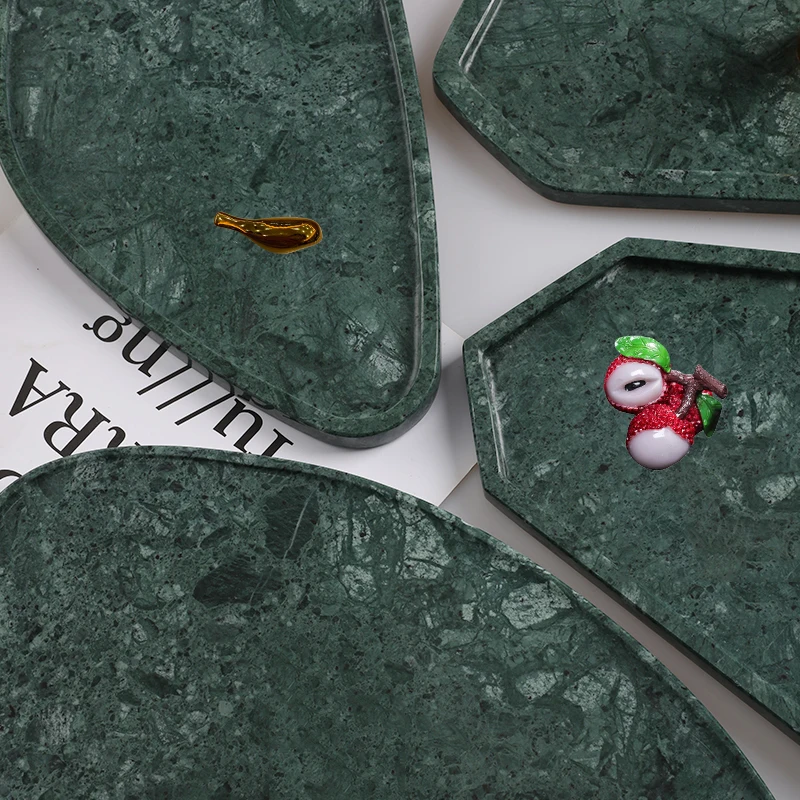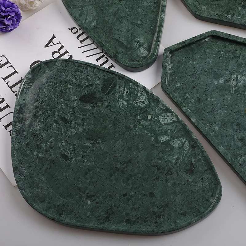 Green Natural Marble Tray Oval and Rectangle Shape for Bathroom Vanity Jewelry Storage and Home Decor