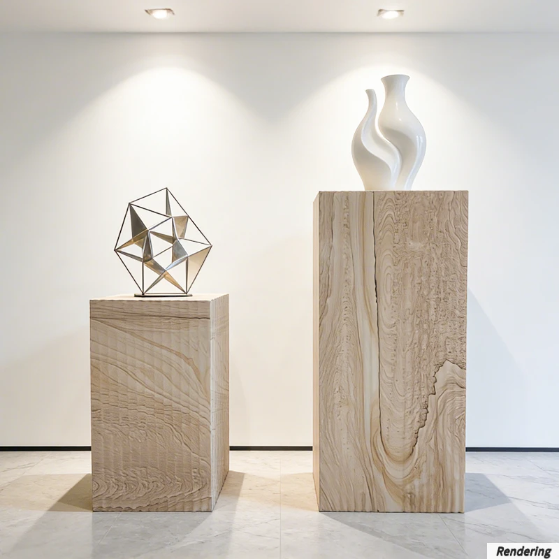 Designers will appreciate the pedestal's minimalist profile, which provides a neutral backdrop that highlights the artwork rather than competing with it. The natural color palette of sandstone pairs well with metal, wood, glass, and other materials, allowing seamless integration into diverse interior themes — from contemporary galleries to classic homes. The simplicity of the form ensures the focus stays on the sculpture's lines, textures, and presence.
