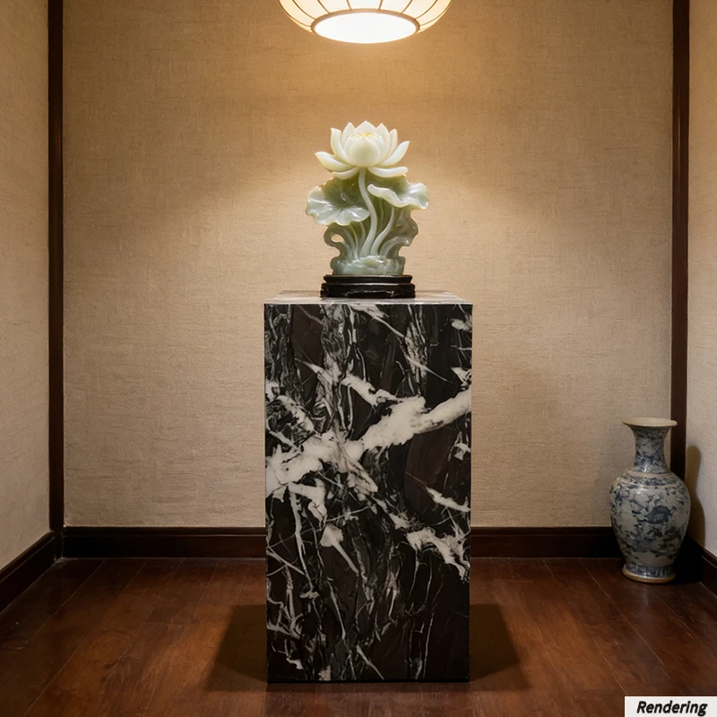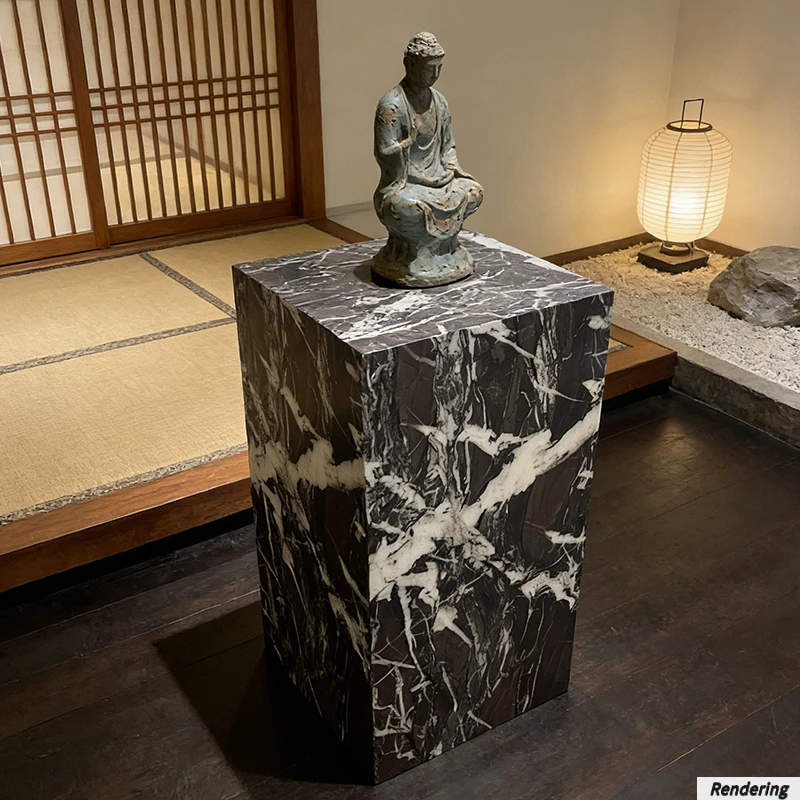 Every angle of the XPIC pedestal highlights the stone's natural patterns, ensuring each unit is unique. Smoothly honed surfaces reflect light subtly, while softly rounded edges and precise proportions deliver a polished, museum-quality look. The solid stone construction gives this stand reassuring weight and durability, making it suitable for high-traffic environments like hotel lobbies and gallery spaces as well as elegant homes.