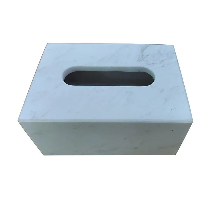 Luxury White Marble Rectangular Tissue Box Holder with Custom Logo for Home Decor Packaged in Carton