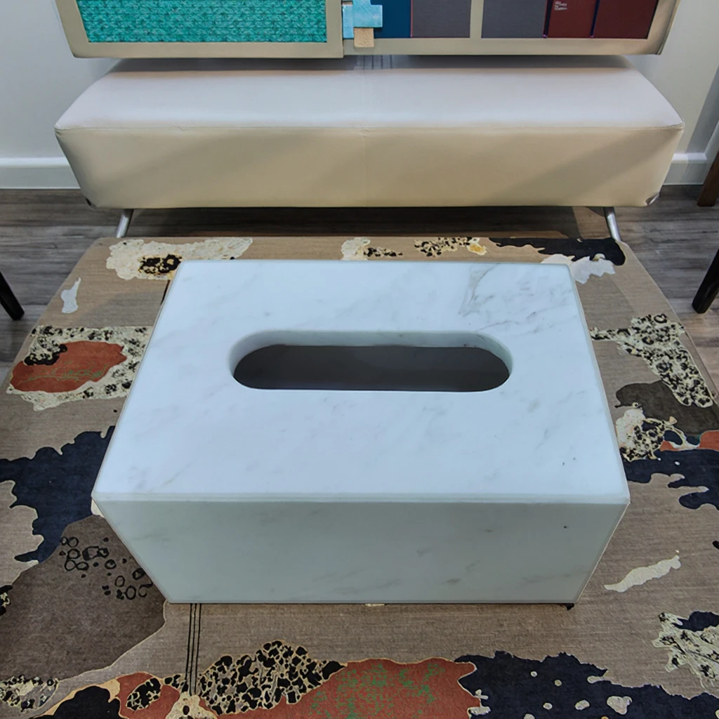 Designed to fit standard rectangular tissue boxes, the XPIC holder offers easy access to tissues while keeping them neatly contained and protected from spills or moisture. The sturdy marble construction adds weight and stability, preventing the box from sliding when you pull a tissue. Rounded inner edges and a precisely cut opening ensure tissues dispense smoothly without tearing.