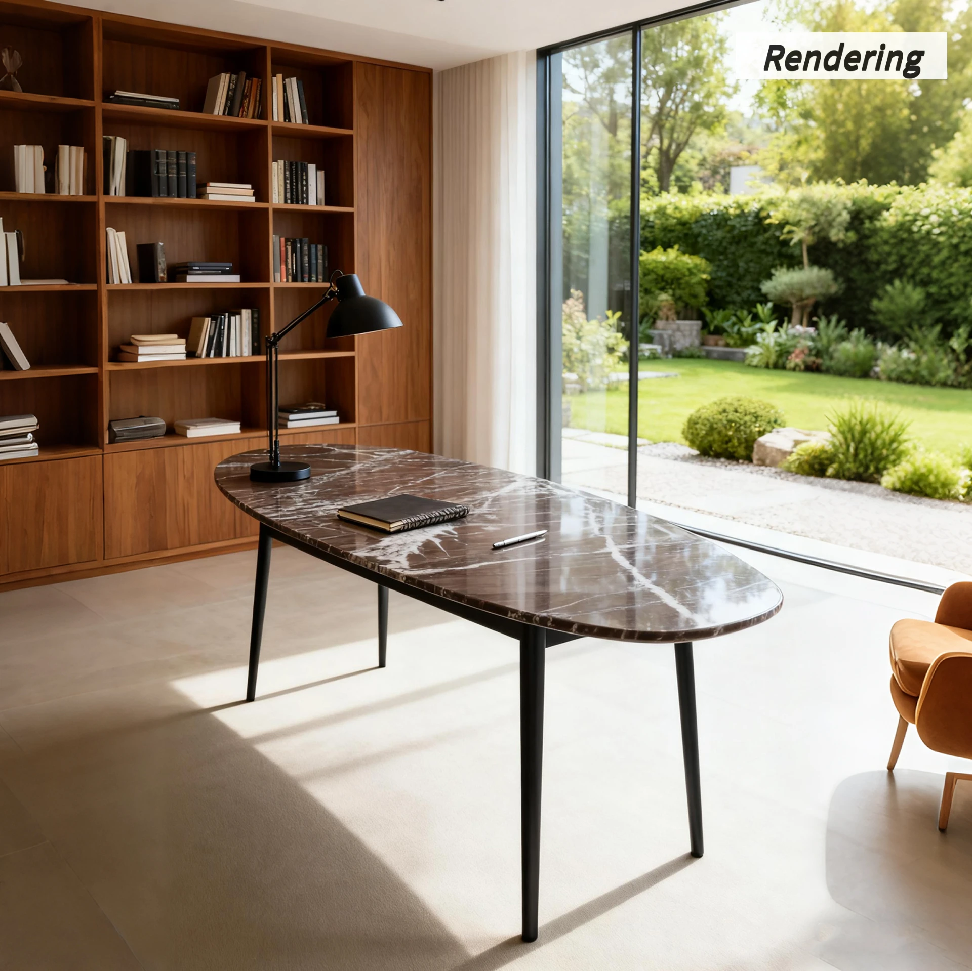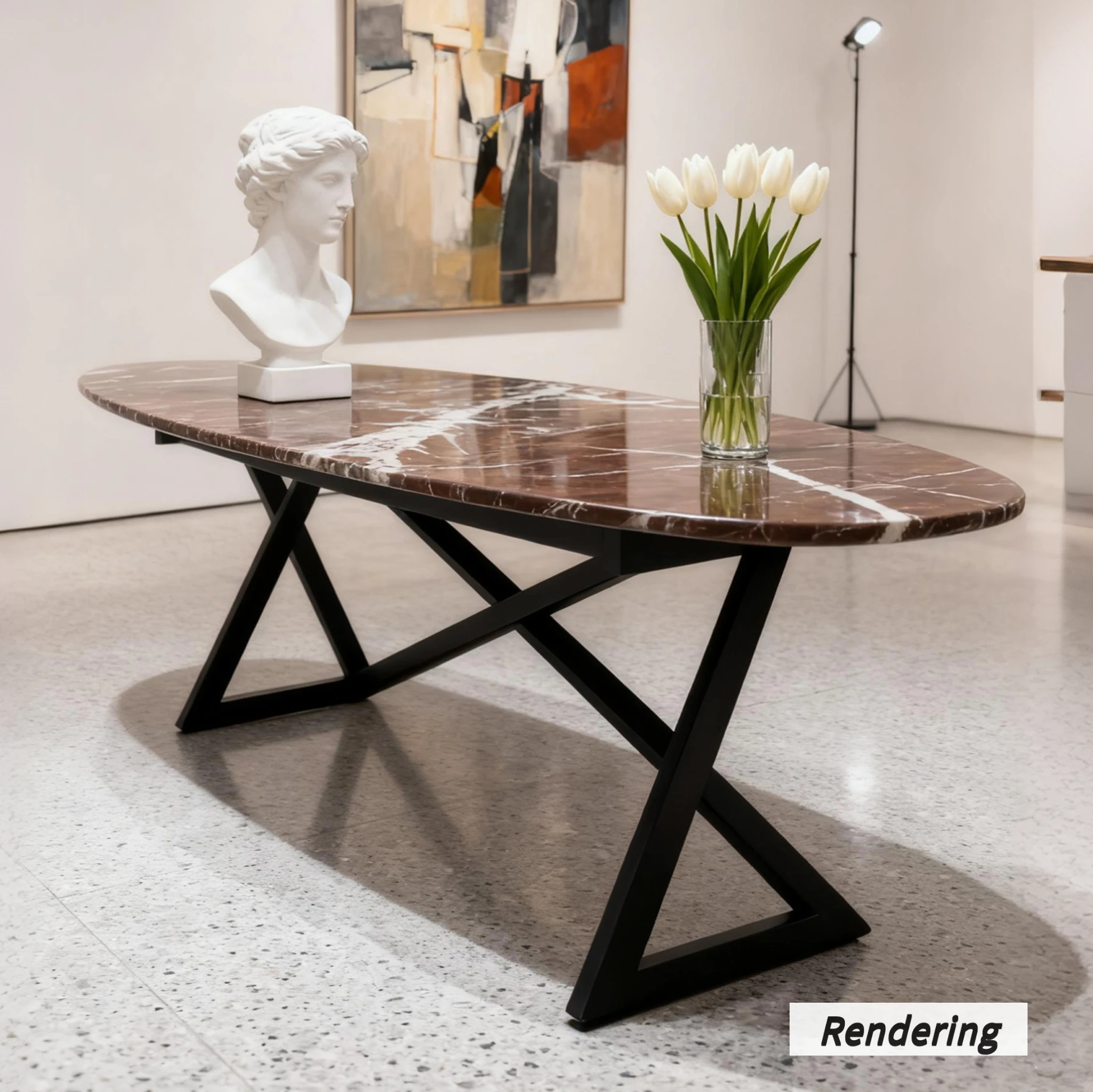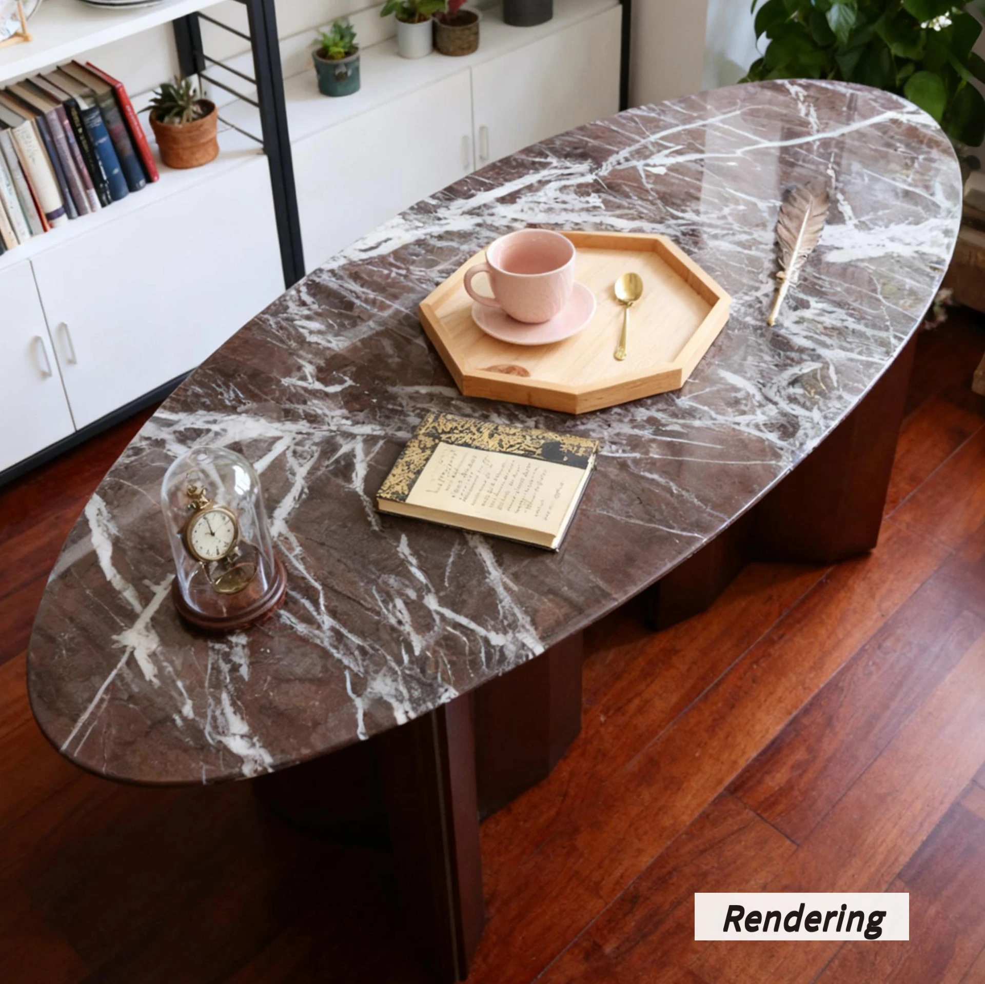 The XPIC Modern Purple Red Marble Oval Dining Table brings bold style and everyday practicality to your dining room or office meeting space. Crafted with a striking purple-red marble tabletop, this table blends rich, natural stone patterns with a sleek, contemporary silhouette. The oval shape creates a smooth, inviting surface that encourages conversation and fits well in both rectangular and round rooms. Designed to comfortably seat up to six people, it's ideal for family meals, dinner parties, or collaborative work sessions.